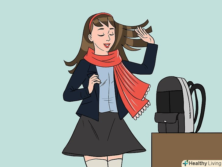 Якщо ви носите шкільну форму, одягніть трохи прикрас. наприклад, можна додати своєму образу пару аксесуарів: ремінь, капелюшок або шарф. Ці нехитрі аксесуари допоможуть вам виглядати стильно і оригінально, особливо якщо ви змушені ходити практично в одній і тій же одязі. Вибирайте прикраси та аксесуари зі смаком і так, щоб вони поєднувалися з вашим образом і сезоном року. Щоб ваш наряд виглядав стильно, можна надіти одну кофту на іншу (в кілька шарів). [3]- Надіньте Класні оригінальні шкарпетки, які будуть добре поєднуватися з формою, або надіньте бандану, якщо вона впишеться в образ.