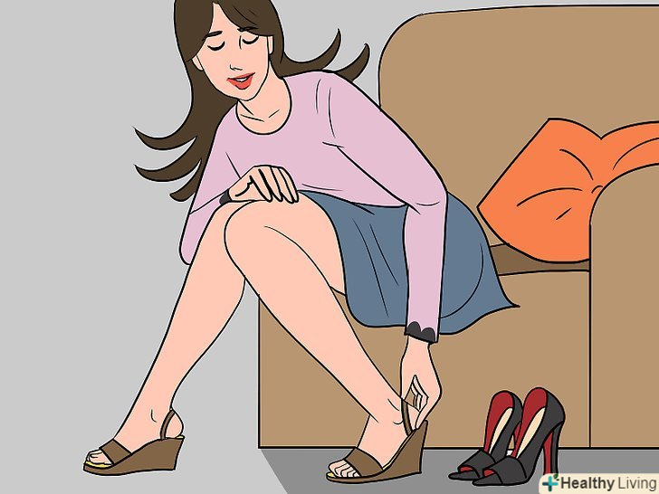 Виберіть туфлі на підборах, завдяки яким ваш образ стане більш виграшним. завдяки туфлям на підборах ви будете виглядати більш привабливо і жіночно. Виберіть туфлі на підборах або на танкетці, які будуть за кольором підходити до основного вбрання. Але перед цим переконайтеся, що ви можете спокійно їх носити! Важливо, щоб вам було в них комфортно і затишно. [5]- Наприклад, можна надіти чорні класичні туфлі на підборах зі спідницею і топом. А можна надіти туфлі на танкетці зі светром або сукнею.
