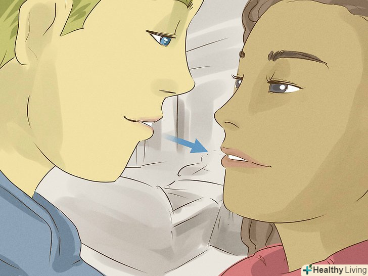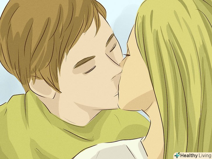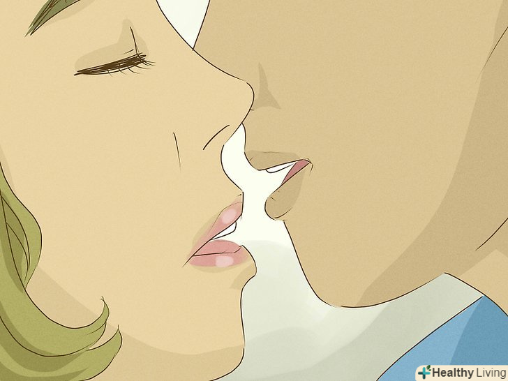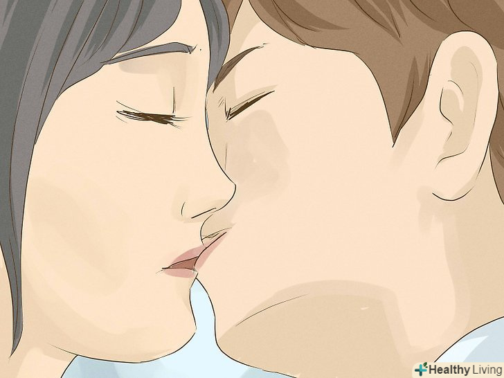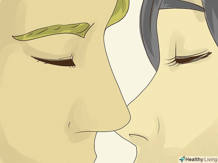 Закрийте очі, щоб не відволікатися при поцілунку. під час поцілунку очі напевно не зможуть зосередитися, тому не відволікайтеся на розмите обличчя партнера. Просто закрийте очі, розслабтеся і довіртеся своїм інстинктам. Багатьом людям поцілунок дається цілком природно. Ви впораєтеся з першим поцілунком, навіть якщо здається, що ви не вмієте цілуватися. [13]- У поцілунку з відкритими очима немає нічого неправильного, але іноді люди вважають подібну поведінку дивним. Щоб уникнути проблем краще просто закрити очі.