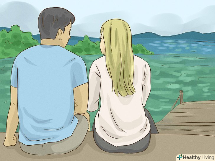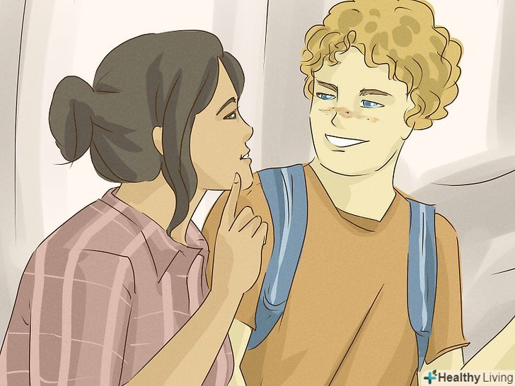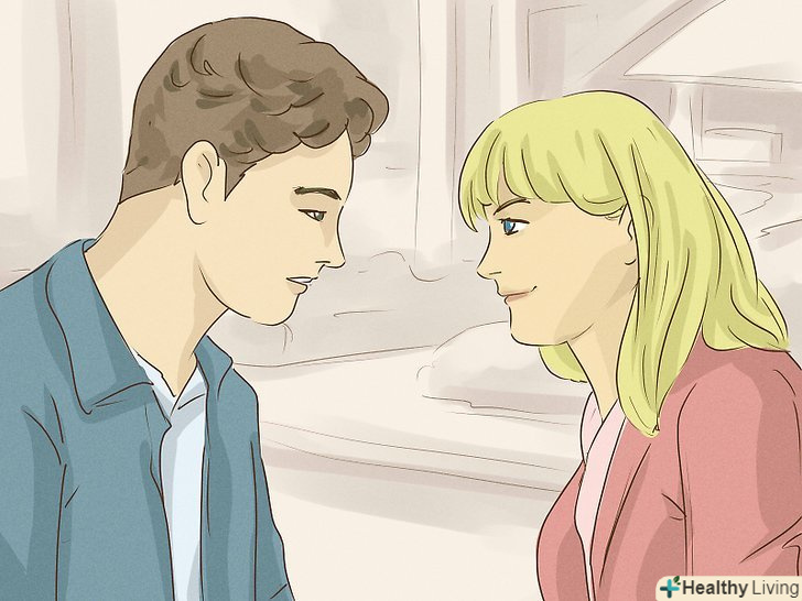 Сядьте поруч з дівчиною, щоб показати своє розташування і встановити близькість. виберіть невимушений момент, щоб присунутися ближче до дівчини (наприклад, під час розмови). Сидіть або стійте навпроти дівчини, щоб розташуватися якомога ближче. По можливості перебуваєте так близько, щоб пальці ваших ніг майже стикалися. Якщо дівчина хвилюється, проведіть деякий час в такій близькості, щоб дівчина звикла до вашої присутності. [3]- Не обов'язково довго сидіти віч-на-віч перед поцілунком, але така близькість допоможе створити відповідну ситуацію. Дійте, коли вважаєте, що настав відповідний момент.