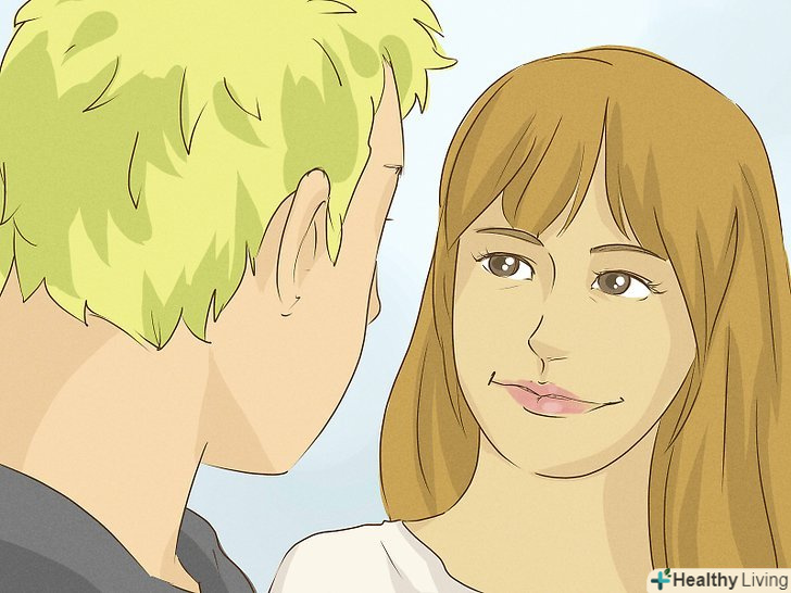 Нахиліть голову до дівчини. стійте на місці і нахиліться приблизно на 90% у напрямку до дівчини. У більшості випадків вона подолає залишилися 10% відстані, яке розділяє вас. Зупиніться, якщо дівчина подалася назад. Значить, ваші відносини ще не досягли такої близькості, при якій можливий поцілунок. [10]- Не закривайте очі під час руху. Це допоможе вам встановить зоровий контакт, щоб оцінити реакцію дівчини.