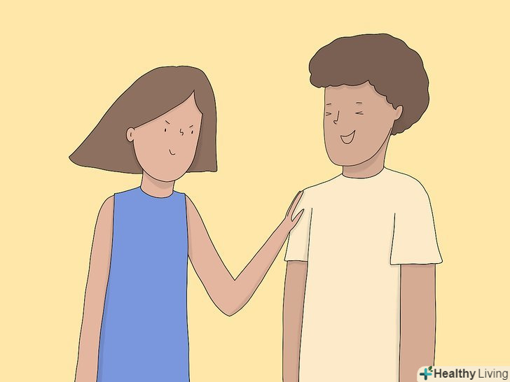 Помічайте легкі дотики. це поширений спосіб показати свою симпатію. Якщо людина грайливо штовхає вас або плескає по плечу, можливо, так він намагається повідомити вам про свою симпатії. [7]- Наприклад, якщо ви проводите час разом і людина грайливо вдаряється стегном об ваше стегно або м'яко стискає плече, то причиною може бути взаємна симпатія.