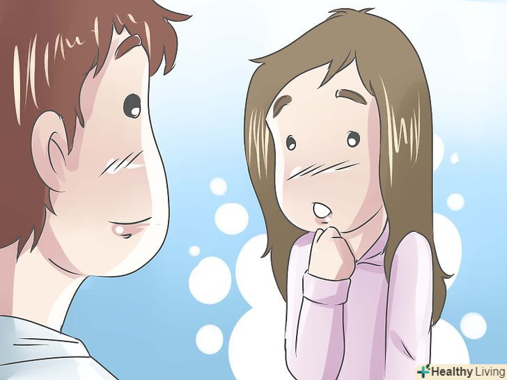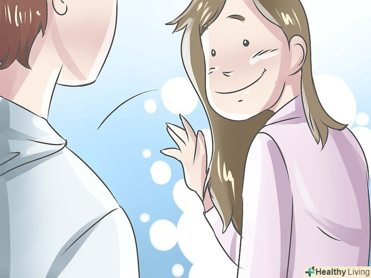 Дайте йому знаки. ви завжди повинні давати вашому хлопцеві можливість самому зрозуміти, що він вам подобається, щоб він міг щось зробити з цим, якщо у нього є таке бажання. Трохи пофліртуйте і переконайтеся, що ви проводите час разом. Спробуйте ввести невеликі дотики та інші натяки. Просто не затягуйте це!- Спробуйте кусати губу кожен раз, коли він дивиться на вас або нервово посміхатися. Подивіться в його очі, а потім повільно відверніться.