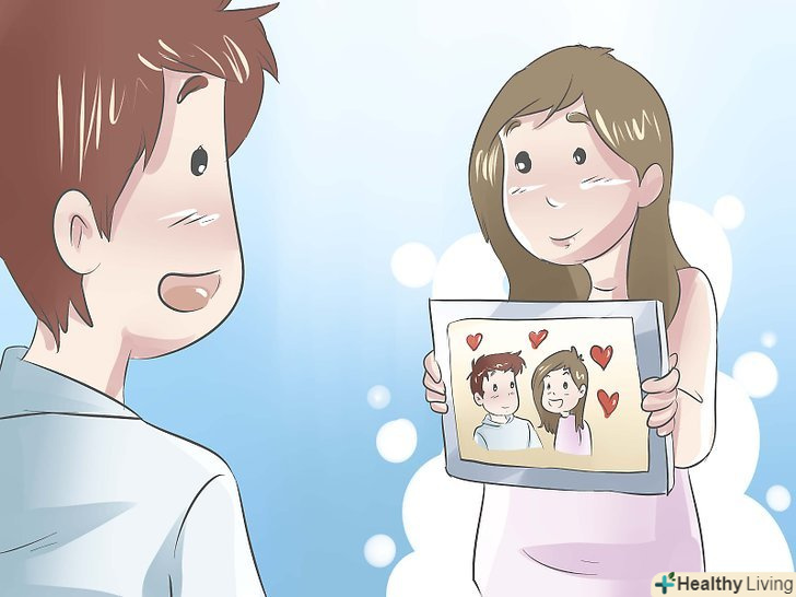 Зробіть йому подарунок. ви можете зробити йому подарунок, щоб зізнатися у ваших почуттях. Спробуйте зробити його відповідним для вашого обранця, і, якщо ви вже друзі, спробуйте використовувати його, щоб нагадати про прекрасні моменти, які ви провели разом.- Прикрасьте маленьку дерев'яну скриньку вашими ініціалами в серці, і наповніть коробочку ваші спільними фото, квитками на фільми, які ви дивилися разом або іншими нагадуваннями про ті веселі речі, якими ви займалися разом.