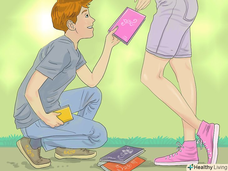 Демонструйте співчуття. Слідкуйте за словами, коли перебуваєте поруч з дівчиною. Ніколи не кажіть того, що може заподіяти їй незручність. Не принижуйте інших навіть жартома, або вона вважатиме вас надмірно критичним і буде вас бентежитися.- Заохочуйте дівчину та інших людей, щоб показати Свою добру вдачу. Підтримка особливо важлива в основній школі, оскільки багато хто забуває про це. [9]