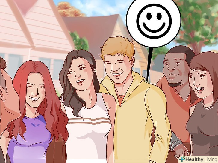 Веселіться. Мало хто може зрівнятися за привабливістю із задоволеною і радісною людиною, яка весело проводить час. Не приховуйте свій гарний настрій, коли ви знаходитесь поруч з дівчиною разом з друзями. Будь-якому буде приємно розділити з людиною радість і веселощі. Радійте життю, адже це найбільш простий спосіб справити позитивне враження. [3]- Обговорюйте з другом захоплюючу ідею або проект, над яким ви працюєте. Не приховуйте свій ентузіазм-це допоможе привернути увагу дівчини.