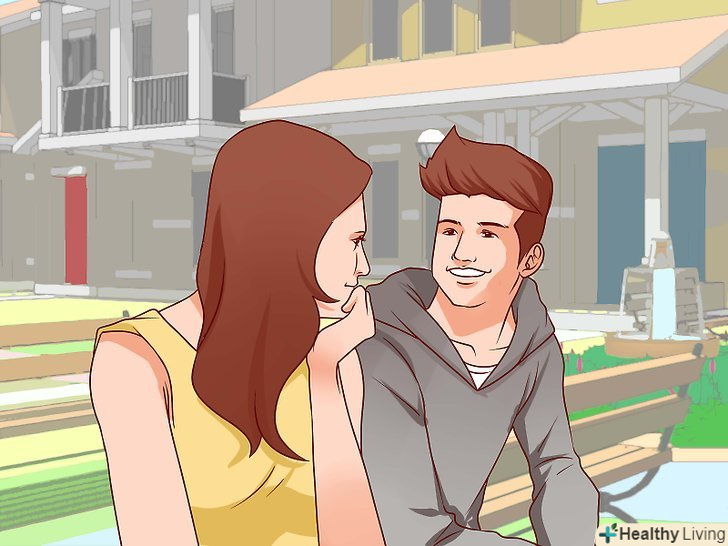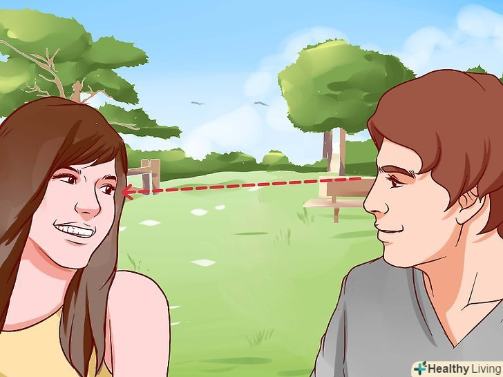 Підтримуйте зоровий контакт. подивіться в очі дівчині, щоб показати свій інтерес і оцінити її зацікавленість. У будь-якій відповідній ситуації прагнете зустрітися поглядом з дівчиною на пару миттєвостей. Не потрібно витріщатися на неї довгий час, інакше вона може відчути дискомфорт. Подивіться в очі дівчині, а через кілька миттєвостей відведіть погляд. [4] [5]- При цьому намагайтеся посміхатися і виглядати дружелюбно.