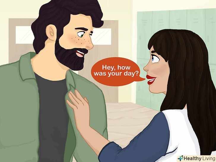 Вітайтеся з ним і посміхайтеся при зустрічі. коли почнете розмовляти з хлопцем частіше, намагайтеся посміхатися і вітатися з ним завжди, коли будете бачити його. Махайте йому рукою або підморгуйте, проходячи повз нього. Затримуйтеся біля його столу, будуйте йому пики. Так він буде знати, що ви думаєте про нього, і буде думати про вас! [11]- Наприклад, якщо ви проходите повз один одного в коридорі, скажіть «Привіт» або просто помахайте йому рукою і посміхніться.