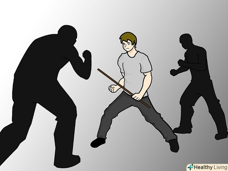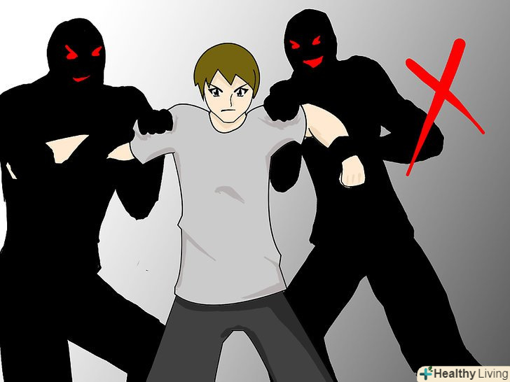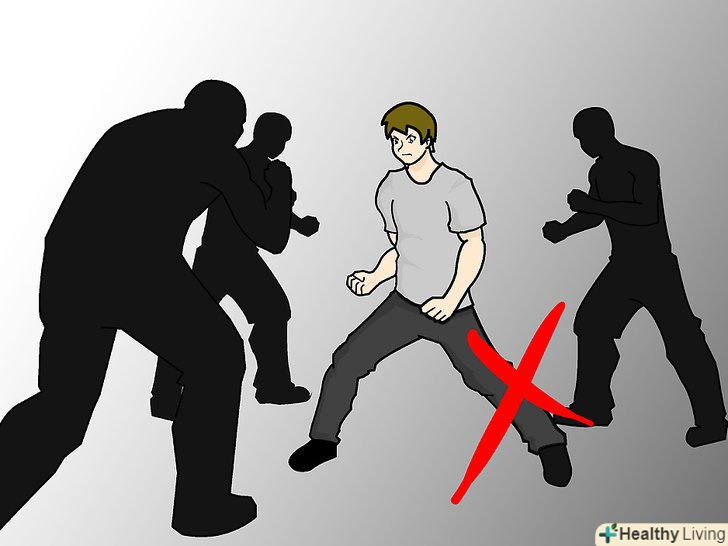 - Вплутуватися в бійку з декількома нападниками небезпечно — по можливості намагайтеся уникати таких ситуацій. Тримайтеся подалі від небезпечних районів, особливо вночі, коли поруч нікого немає. [7]