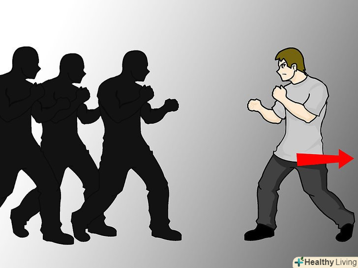 Продовжуйте рухатися. варто зупинитися на одному місці, і у нападників з'явиться можливість оточити вас. Використовуйте багато маленьких, швидких кроків з ноги на ногу, щоб залишатися рухливим, і продовжуйте пересуватися невеликими кроками. [4]