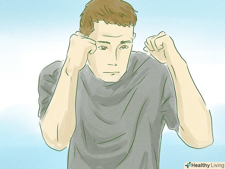 Навчіться грати в обороні. хороша оборонна позиція так само важлива, як міцний удар, якщо не більш важлива. Пам'ятайте, що це не фільм про Роккі: пара твердих ударів у вашу щелепу - і ви будете на землі, де ви точно не хочете опинитися.- Тримайте кулаки вільно біля обличчя і перенесіть вагу так, щоб ваше плече і стегно на домінуючій стороні вказували на противника. Не ставайте обличчям до опонента, а поверніться боком, щоб зробити ціль менше.