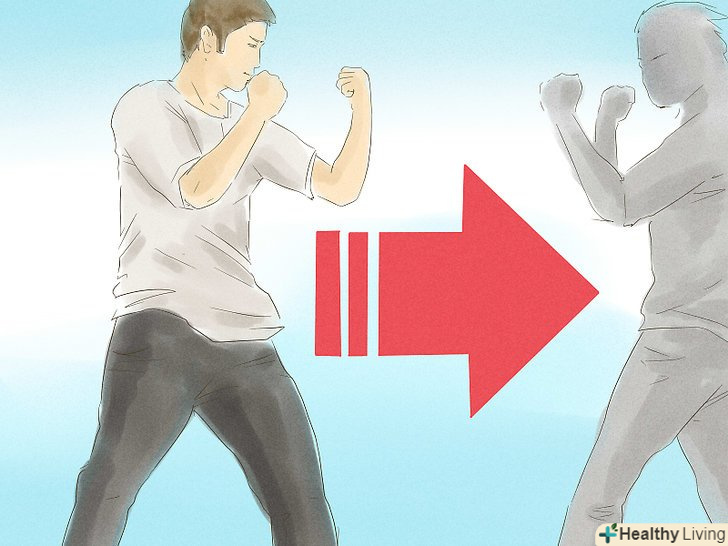 Рухайтеся вперед, а не назад. під час удару йдіть прямо в бік вашого опонента, тримаючи свою оборонну позицію, і зробити його своєю метою,збити його. Найкращий спосіб зробити це-подивитися якомога більше-і заздалегідь, заздалегідь, заздалегідь. Не дозволяйте собі бути відкинутим назад.- Хоча це може здатися неймовірним і буде йти проти ваших природних інстинктів, набагато безпечніше і менш болісно перейти до ударів, ніж відступати від них. Продовжуйте рухатися вперед і відкидати ворога назад, а не відступати самому. Якщо вам потрібно взяти удар, припинити його на півдорозі, перш ніж він досягне повної потужності, буде менш боляче, ніж на піку замаху, де вас, швидше за все, зіб'ють. Перемістіться вперед і змусьте ворога задкувати.