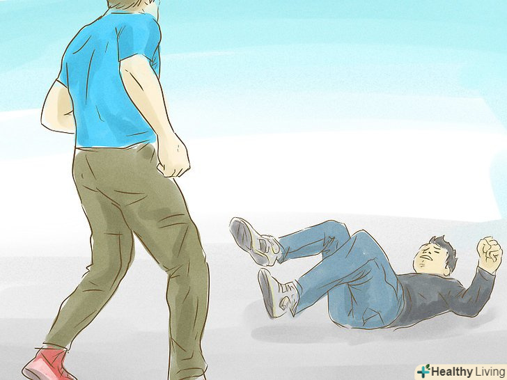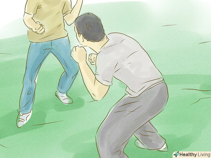 Станьте на ноги. намагайтеся не впасти ні за яких обставин або перевести бій на землю. Постояти за себе в швидкому кулачному поєдинку-іноді найкращий спосіб впоратися з жорсткою ситуацією, якщо ваш ворог штовхає вас на це, але боротьба, яка закінчується боротьбою на землі, небезпечна і слід уникати її за всяку ціну.- Якщо ви перекинете опонента, відступите назад і скажіть йому: "це все", - і підіть. Ви довели свою точку.
