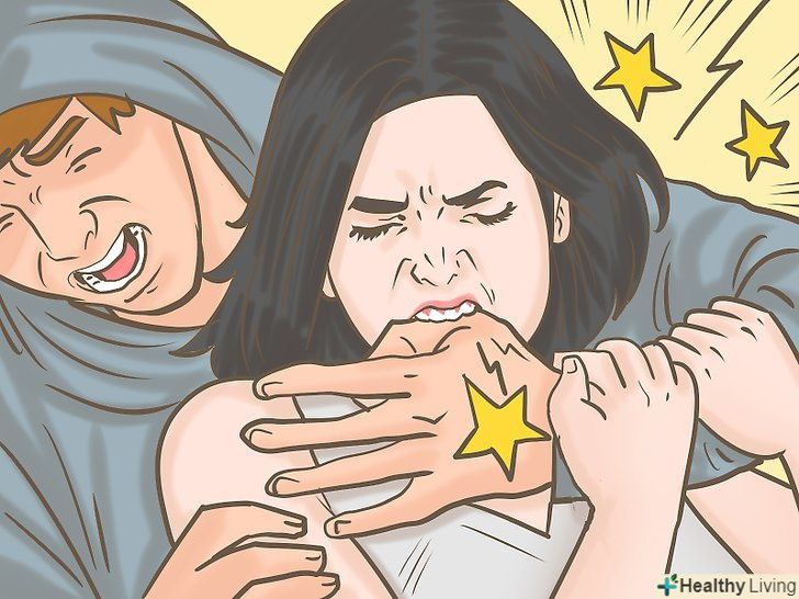 Прагніть вкусити викрадача. Кусайте якомога сильніше за будь-яку частину тіла. Зазвичай найболючішим може виявитися» щипає " укус, якщо затиснути між зубами тонкий шар шкіри, а не спроба вкусити сильніше відкритим ротом. Ймовірність прокусити шкіру може викликати нудоту, але не думайте коливатися. [13]- Зловмисник повинен випробувати такий біль, щоб ви отримали можливість втекти.