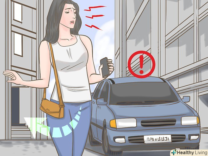 Дивіться перед собою і по сторонах, щоб не відволікатися. зловмисники часто вибирають людей, які відволіклися і не помічають того, що відбувається навколо. Не потрібно постійно дивитися в телефон, коли йдете пішки або їдете на автобусі. Завжди звертайте увагу на навколишній пейзаж і людей. Це допоможе вам розпізнати потенційно небезпечну ситуацію. [1]- Тримати телефон в руках абсолютно нормально і навіть корисно, якщо вам потрібно терміново кликати на допомогу. Просто не потрібно занадто занурюватися в смартфон, не помічаючи нічого навколо.