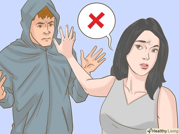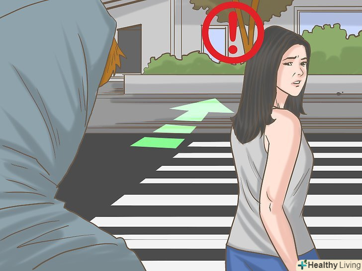 Перейдіть вулицю або підійдіть до іншої людини, якщо вас переслідують. якщо людина слідує за вами пішки, то необхідно скоріше опинитися поруч з іншими людьми або хоча б відійти на достатню відстань, щоб вас не могли схопити. Найголовніше - не підпускати людину занадто близько до себе, щоб він не міг торкнутися вас або координувати викрадення зі своїм спільником, який може перебувати в автомобілі неподалік. [3]- Зазвичай чим більше людей, тим безпечніше. Спробуйте заскочити в магазин або перейти на більш жваву сторону вулиці. Викрадачі рідко нападають, коли жертва оточена людьми.