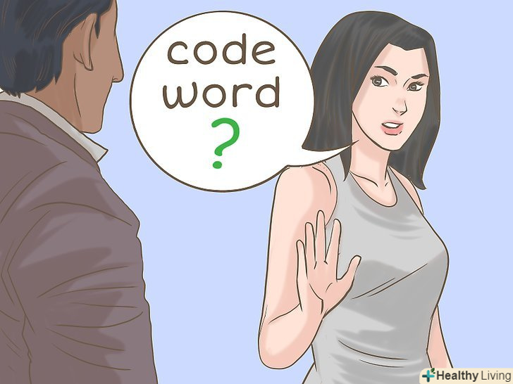 Запитайте сімейне «кодове слово», якщо людина представилася другом. разом з членами сім'ї виберіть кодову фразу, яка буде відома тільки вам. Якщо на вулиці до вас підійдуть люди і скажуть, що їх послали ваші батьки, щоб привезти вас додому, то вони повинні будуть назвати кодове слово або фразу. В іншому випадку біжіть геть і зверніться за допомогою до дорослих поблизу з вами. [5]- Слово або фраза повинні бути простими, але унікальними, щоб незнайомець не міг випадково вгадати ваш пароль.