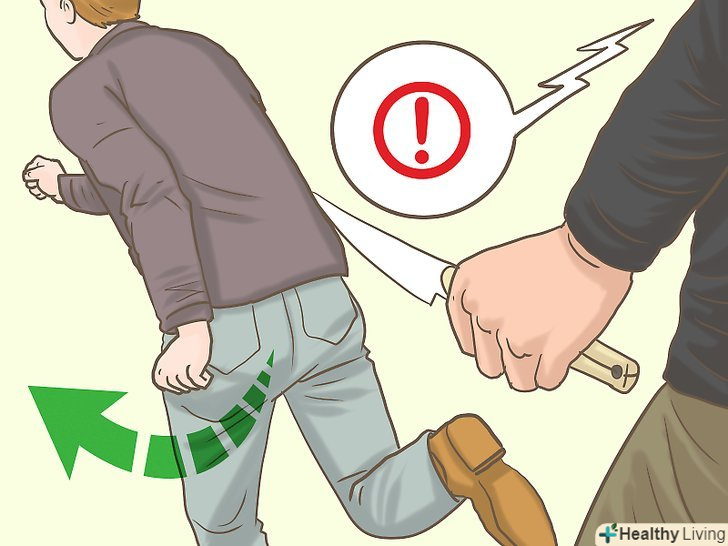 Тікайте, як тільки вийде обеззброїти противника. Пам'ятайте, що ви не намагаєтеся взяти верх, а рятуєте своє життя. Якщо вдалося поранити або оглушити викрадача, починайте бігти і кричати. Не озирайтеся, щоб не сповільнитися. Продовжуйте бігти, поки не опинитеся в безпеці. [17]- Зателефонуйте в поліцію при першій же можливості. Вони можуть повернутися на місце події і спробувати знайти злочинця. Також слід написати заяву, пройти медичний огляд і повідомити поліції опис нападника.