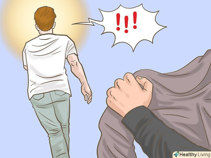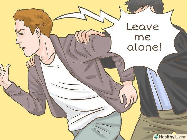 Втікайте і викрикуйте конкретні фрази, щоб привернути увагу людей. по ряду причин люди рідше відгукуються на заклик: «Допоможіть!«Краще кричати:» я вас не знаю«,» Залиште мене в спокої«,» це не мої батьки«, — або:»людина в червоній футболці хоче мене викрасти". Конкретика допомагає привернути увагу. [8]- Продовжуйте кричати, поки не віддалитеся на безпечну відстань від викрадача.