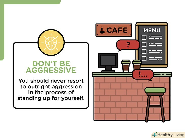 Не будьте агресивні. не варто вдаватися до агресії в спробі захистити себе. Агресія і жорстокість непродуктивні, вони не допоможуть вам залучити інших людей на свою сторону.- Агресивна поведінка( вербальна або фізична) — це демонстрація свого болю у всіх подробицях. Це неконструктивний спосіб отримання бажаного, така поведінка лише відверне від вас людей.