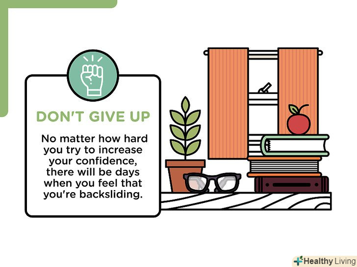 Не здавайтеся. як би ви не прагнули підвищити свою впевненість в собі, будуть дні, коли вам буде здаватися, що ви повертаєтеся до того, з чого починали.- Не сприймайте це як поразку — вважайте, що це всього лише дрібні відступи від плану перед великим ривком вперед. Наступні поради допоможуть вам:
