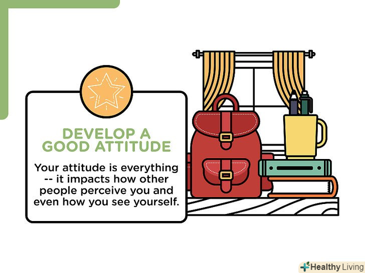 Будьте позитивні. ваше ставлення до життя впливає на те, як інші люди сприймають вас, і на те, як ви сприймаєте себе. Ваше ставлення задає тон вашому голосу, якості думок і відбивається в міміці і мовою тіла . [1]- Пам'ятайте, що це ставлення є «заразним». Якщо ви товариські, радісні і оптимістичні, ви будете робити оточуючих вас людей такими ж: вони будуть любити себе і навколишній світ. Але якщо ви похмурі, песимістичні і бачите все в чорному світлі, ви заразите цим негативом всіх навколо.