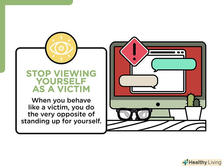 Перестаньте вважати себе жертвою. Якщо ви думаєте, що ви жертва, ви робите протилежне тому, що повинні робити: ви тікаєте від відповідальності за ситуацію, що склалася і звинувачуєте в своїх проблемах когось іншого.- У багатьох людей причина нездатності захистити себе криється в страху бути відкинутим або осміяним, оскільки таке вже траплялося в минулому. Приймаючи такий досвід близько до серця і ховаючись в свою раковину, ви будете сприймати себе як жертву, а це означає, що постояти за себе вам буде складніше.