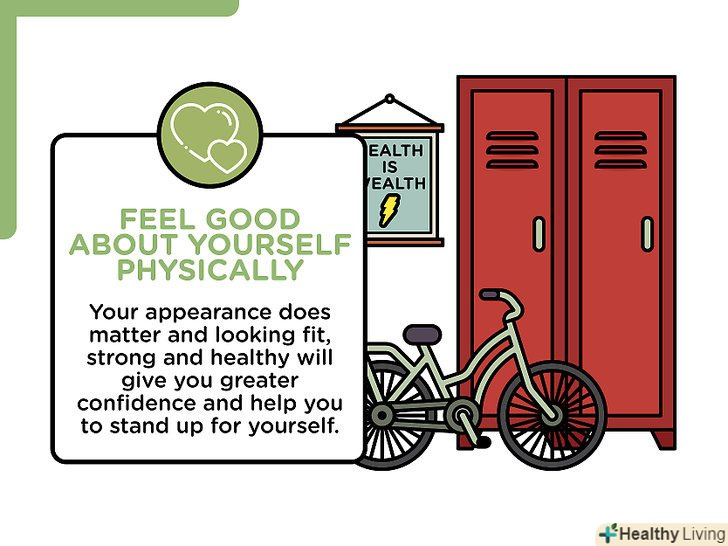 Любіть свою фізичну оболонку. Ви не зобов'язані виглядати як люди на глянцевих обкладинках, але ваша зовнішність має значення. Підтягнутий і здоровий вигляд подарує вам впевненість у своїх силах, яка вам ще стане в нагоді.- Знайдіть заняття, яке вам до душі (наприклад, силові тренування, біг, танці або скелелазіння), і пориньте в нього. Це не тільки поліпшить ваше самопочуття і фігуру — вам буде весело займатися своїм хобі, а це зробить вас людиною, задоволеним своїм життям.