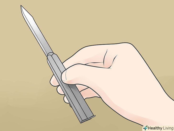 Затисніть задню частину ножа між великим і вказівним пальцями, давши передній частині ножа і лезу впасти вниз.