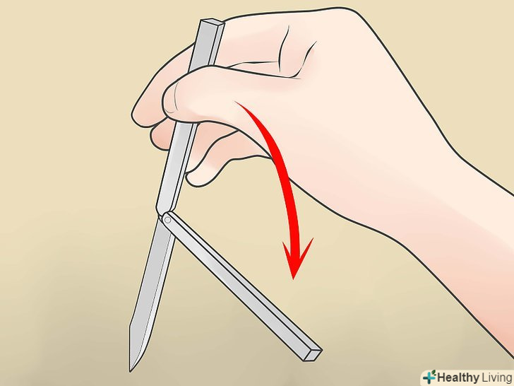 - Переконайтеся, що тримаєте ніж не сильно, але міцно, так як ніж з легкістю може вилетіти з вашої руки, коли ви будете швидко розкривати/закривати його, якщо ви недостатньо практикувалися. Не зламайте ніж своїм захопленням, але і не тримайте його слабо.
