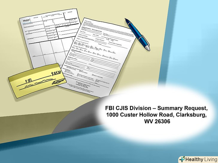- Відправте все поштою за адресою: FBI Cjis Division-Summary Request, 1000 Custer Hollow Road, Clarskburg, WV 26306.