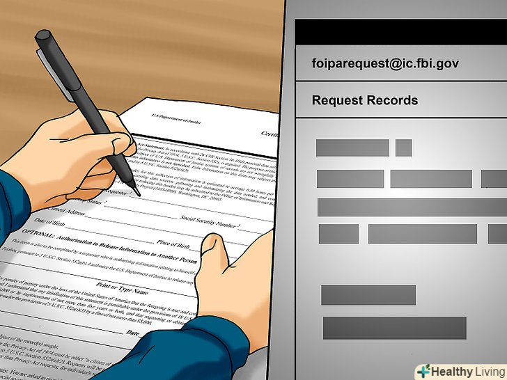 - Якщо ви запитуєте дані про живу людину, вам потрібно буде докласти його письмове на те дозвіл. Використовувати форму DOJ-361 і заповніть розділ Authorization to Release Information to Another Person (дозвіл на розголошення даних третій особі).
