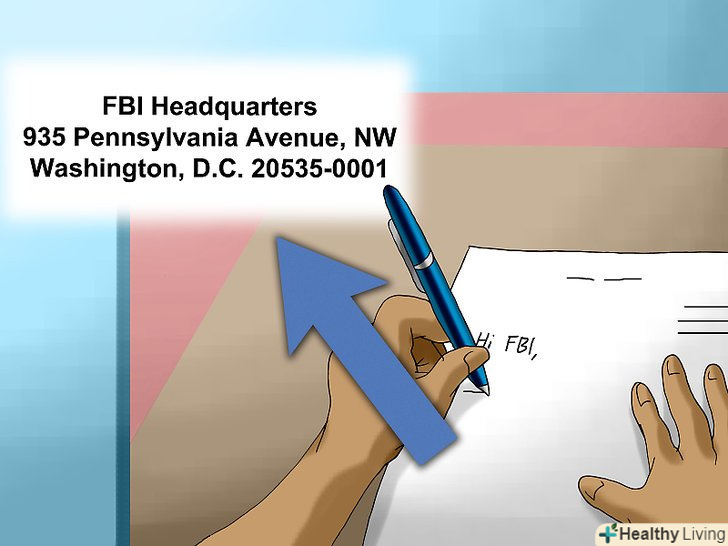 Зателефонуйте або напишіть в штаб-квартиру ФБР. звичайно, ефективніше буде звернутися в місцевий офіс або відправити форму, але і зі штаб-квартирою ФБР ви теж завжди можете зв'язатися. Номер телефону - 202-324-3000, адреса така:- Штаб-квартира ФБР