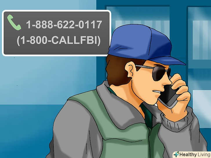 Зателефонуйте в контакт-центр з особливо важливих справ " Major case Contact Center "(MC3), щоб повідомити про скоєні злочини. якщо ви не знаєте, за яким саме номером слід дзвонити, щоб повідомити про злочин, наберіть номер MC3, а саме 1-800-225-5324 (1-800-CALLFBI). Цей же номер можна використовувати, якщо ви хочете повідомити ФБР якусь цінну інформацію. [2]