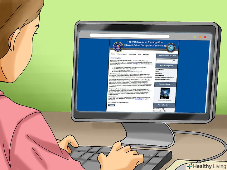 Зверніться до центру боротьби з інтернет-злочинами (IC3). до таких злочинів відносять зломи, онлайн-шахрайство (підроблені листи, недоставка товару, сумнівні бізнес-схеми і так далі). Подати скаргу в IC3 можна, якщо і жертва, і злочинець знаходяться в США, для цього скористайтеся сайтом IC3 . Також вам доведеться вказати наступні дані: [5]- Ваше ім'я