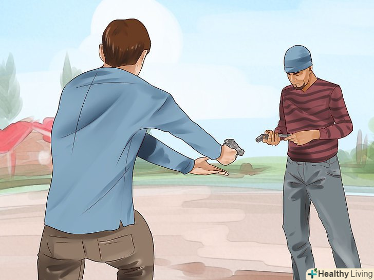 Бігти на поганого хлопця в більшості випадків може здатися поганою ідеєю, але якщо він перезаряджається або ще як небудь відволікся, це може забезпечити вам перевагу (ви можете застати його зненацька або обеззброїти). встановіть ціль з мішенню на грудях (25 см і більше) на відстані 13,7–18,3 м від вас. Починайте бігти до неї, а коли відчуєте, що ви досить близькі для того, щоб потрапити по цілі в русі, сповільнитеся до ходьби з зігнутими колінами (щоб підтримувати плавність рухів верхньої частини тіла) і стріляйте.- Додайте до бігу різні елементи: нехай друг говорить вам коли стріляти (в довільному порядку). Або починайте бігти в той же час, коли ваш друг починає перезаряджатися. Нехай друг кричить, коли він закінчив, щоб дати вам знати, коли починати стріляти. Це можна перетворити на змагання з перезарядки і бігу (ви також отримаєте уявлення про час перезарядки на випадок, якщо коли-небудь ви захочете накинутися на супротивника).