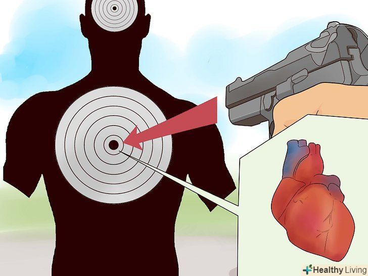 Порожнина грудної клітини - це "центр ваги" людського тіла. У цій області знаходяться серце, великі вени і артерії, трахея, бронхи і легені, стравохід і нервові структури, включаючи парні блукаючі нерви. Область, яка укладена порожниною грудної клітини починається вище діафрагми (прямо під грудиною) і утворює (якщо дивитися спереду) купол з вершиною у першого поперечного ребра. Це досить велика область для прицілювання. Попадання в будь-яку із зон грудної клітини не матиме кардинальних особливостей від інших, якщо тільки ви не потрапите в серце.- Проблема з пострілами в порожнину грудної клітини полягає в тому, що повний рішучості або знаходиться в стані наркотичного сп'яніння боєць буде не особливо вражений, що б не потрапило йому в груди. Навіть якщо знищити серце людини, у нього буде від 20 до 30 секунд нормальної розумової і фізичної діяльності, за які він зможе важко поранити або навіть вбити вас. До того ж, серце – це дуже дрібна мішень і повністю зруйнувати серце одним пострілом практично неможливо. Це означає, що у противника буде ще більше часу, перш ніж його доля буде вирішена. З цих причин у багатьох є правило самооборони:"Стріляй, поки загроза не буде нейтралізована". Але ви повинні самі вирішити, яким буде ваше правило.