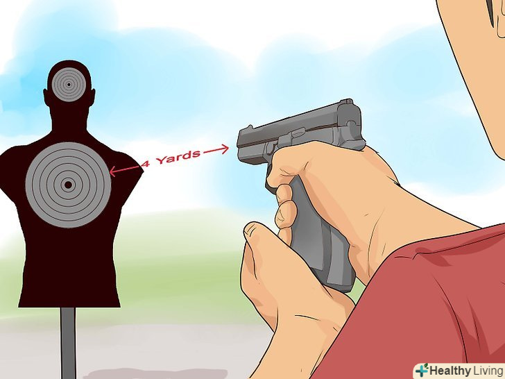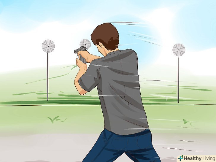 Тренуйтеся з кількома цілями . ви можете почати, встановивши три або більше цілей на відстані метр або два. Вибігайте на вогневу позицію і пересувайтеся уздовж лінії. Один постріл по кожній меті. Змініть завдання: спробуйте стріляти в іншому порядку; нехай друг називає Вам номер мети, по якій потрібно стріляти ("перша!", "третя!", і т. д.), однак ключовий момент полягає в тому, щоб гарантовано потрапляти в ціль. Як тільки ви будете впевнені, що можете в будь-якому випадку потрапити по цілі, спробуйте прискорити темп. Спочатку, коли ви стріляєте, рухайте пістолет разом з віддачею. Як тільки віддача закінчиться, ви повинні будете працювати з іншої мети. Стаючи швидше, ви зможете силою повертати пістолет на місце і бути підготовленим до наступного пострілу, перш ніж закінчиться віддача.