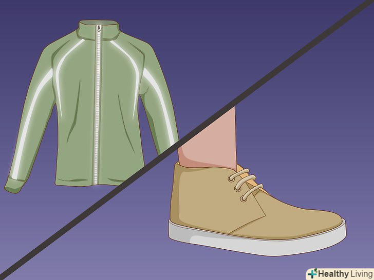 Носіть одяг зі світловідбиваючими елементами і зручне взуття. Якщо вам доводиться ходити в темний час доби, носіть одяг зі світловідбиваючими смужками, які розташовані спереду, внизу, з боків, а також на спині. Одяг зі світловідбиваючими елементами дозволяє водіям автомобілів і мотоциклів бачити Вас в нічний час. Також подбайте про зручне взуття, наприклад, носите кросівки. У кросівках ваша хода буде більш впевненою, а також ви зможете швидко втекти від потенційного зловмисника. [6]- Якщо ви повертаєтеся додому з офісу, візьміть кросівки з собою в окрему сумку, щоб перевзутися і безпечно дістатися додому. [7]