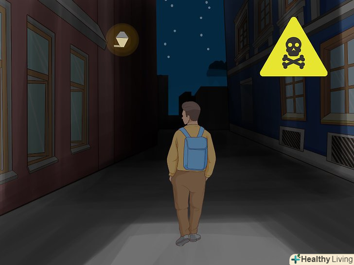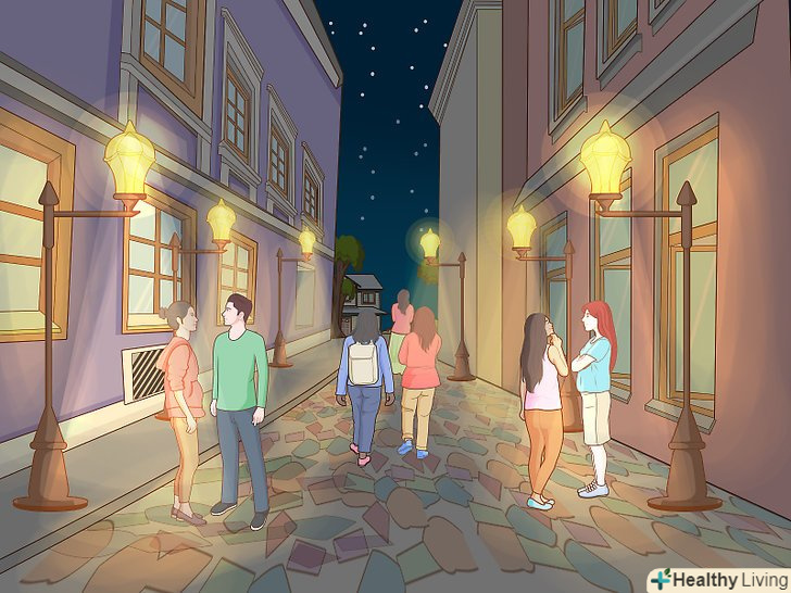 Ходіть по жвавих вулицях. якщо ви змушені бути на вулиці в нічний час, завжди вибирайте маршрут, де можна зустріти інших перехожих. Завдяки цьому ви не будете відчувати страх, відчуваючи, що ви один на безлюдній вулиці. Крім того, намагайтеся вибирати такі вулиці, де інші люди знають вас. Завдяки цьому ви завжди зможете постукати в двері сусідові, якщо відчуєте, що перебуваєте в небезпеці. [8]