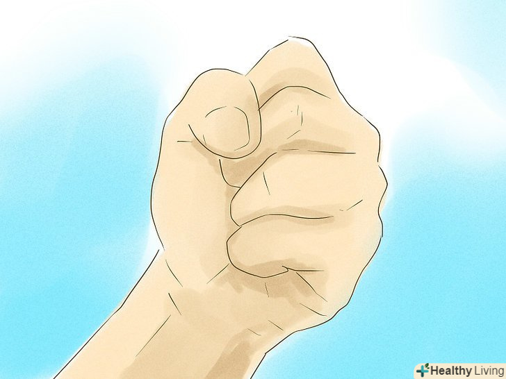 Стисніть кулак правильно. великий палець повинен бути зверху, а не всередині пальців — так, як ніби ви тримаєте в руці комашку і не хочете, щоб вона вирвалася. Чи не стискайте руку занадто сильно, інакше порушиться кровообіг, робіть це лише при ударі, а не при захисті. [4]- Люди травмують свої кулаки з тієї причини, що вони б'ють не тією частиною руки, якої потрібно. Слід бити по цілі середніми кісточками, які знаходяться між вказівним і середнім пальцями.