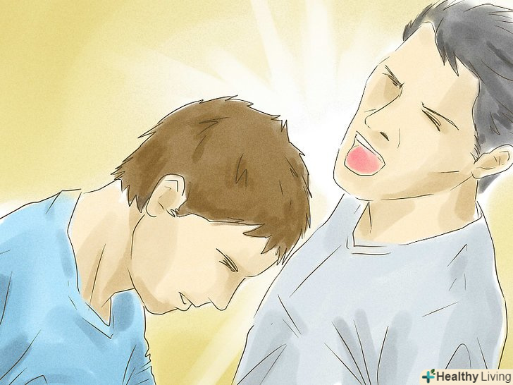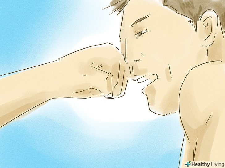 Вмійте приймати удари. якщо ви вирішили побитися, то будьте готові до порції ударів. Якщо ви будете рухатися, це ускладнить завдання вашому противнику. Не відкривайтеся, якщо бачите, що він готовий до атаки. [11]- Якщо вас вдарили в обличчя, напружте м'язи шиї, прикрийте щелепу і подайтеся вперед. Рух назустріч удару пом'якшить його, а якщо ви подасте назад, то можете впасти. Це непросте завдання, так як у вас з'явиться природне прагнення отпрянуть від насувається кулака. Просто уявіть, що це футбольний м'яч і вам потрібно його відбити — так буде легше. Якщо ж противник вдарить вас в лоб, то йому ж гірше. [12]
