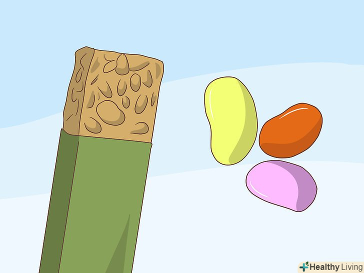 Правильно виберіть їжу. візьміть з собою щось дрібне, щоб шматочки можна було класти в рот цілком. Не беріть великі продукти або їжу, яка шумом може видати вас. Не беріть нічого, чим можете забруднитися. Спробуйте мармелад, порційне желе, шоколадне драже тощо.- Вибирайте дрібну їжу, яку не буде видно в руці, коли ви будете їсти (родзинки, горіхи, мармеладки, Mamp;Ms, тощо), а також їжу, яка не буде кришитися або шуміти (крекери, як правило, не будуть хорошим варіантом).