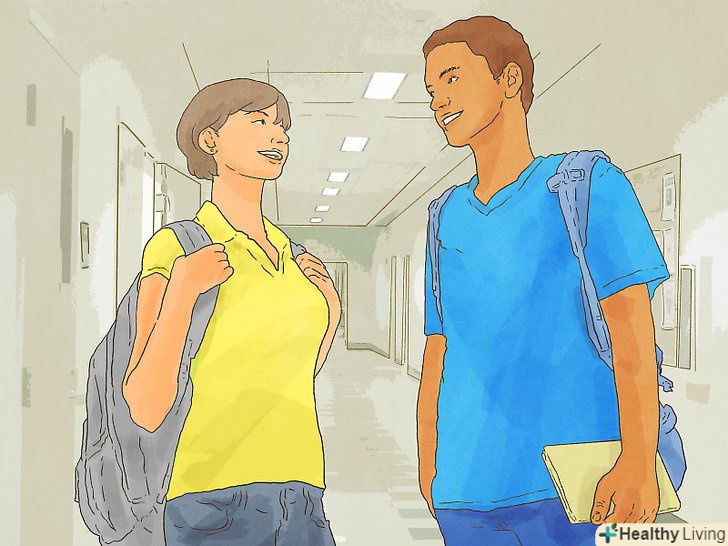 Будьте соціальним метеликом. не переживайте з приводу того, з ким ви будете сидіти під час обіду, а Зберігайте дружбу з тими, з ким ви вчилися в молодших класах або можливо з учнями з вашої паралелі. Це просто зробити, сказавши: "Привіт, мене звуть [ваше ім'я], а як тебе звуть?"або" в яку школу ти ходив в минулому році?"Почніть з простих питань. Компліменти також відмінний спосіб почати бесіду, похваліть людини за щось. Наприклад ," у тебе гарна сорочка, де ти купив її?"