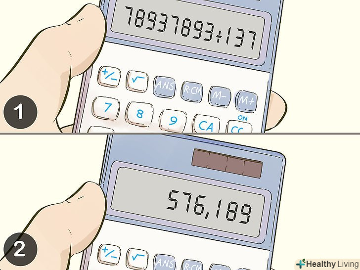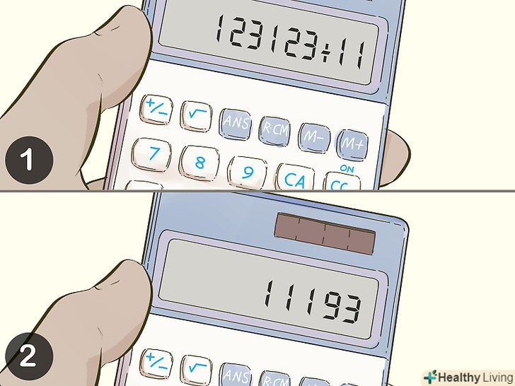 Попросіть добровольця загадати 4-значне число і двічі ввести його в калькулятор. можна загадати будь-яке 4-значне число-передайте калькулятор добровольцю і попросіть його ввести число. [6]- Наприклад, якщо доброволець загадав число 7893, він або вона повинні ввести число 78937893.