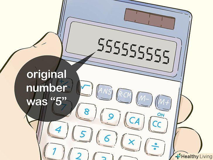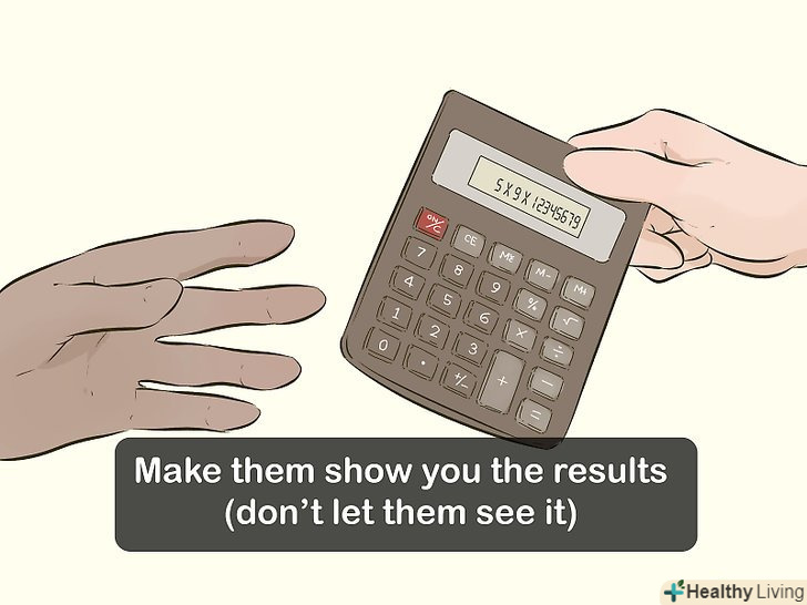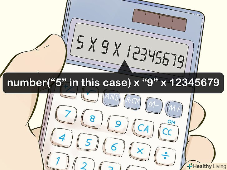 Попросіть добровольця за допомогою калькулятора помножити вибране число на 9, а потім на 12345679. зверніть увагу, що в другому числі немає цифри 8. Переконайтеся, що доброволець помножив вибране число на 9, а потім на 12345679 (без 8). [2]- Робіть вигляд, що читаєте думки добровольця, поки він або вона виконують множення.
