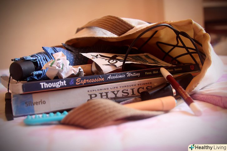 Почніть з того, що просто висипте все зі старої сумки на підлогу. краще робити це на твердій відкритій поверхні. Перегляньте свої речі і викиньте очевидне сміття (старі серветки, ковпачки від ручок, папірці тощо). Після цього запитайте себе, що вам по-справжньому потрібно для школи, а що просто потрапило в рюкзак випадково. Визначайте подальшу долю речей з рюкзака швидко і без зайвої напруги. Бути може, гребінець краще покласти в сумку для спортзалу, і використовувати її там? Швидше за все, вам не потрібні 3 запасні папки і 10 бальзамів для губ, – складайте в рюкзак тільки ті речі, якими ви будете часто користуватися.