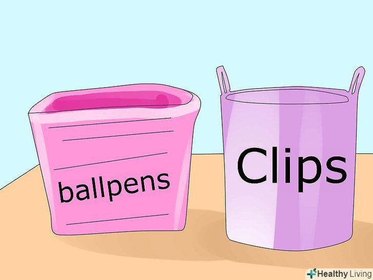 Зробіть маленькі кишеньки або Кошики (в розмір шафки), щоб класти такі речі, як папір, скріпки та інші речі. переконайтеся, що позначили їх.