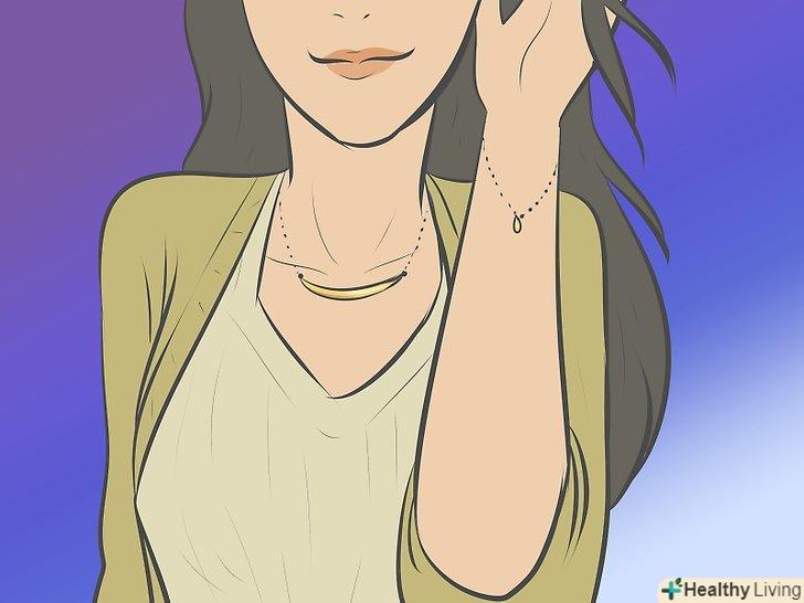 Прикраси. якщо правила школи дозволяють носити коштовності, ви можете робити це! Тримайтеся подалі від яскравих кольорів. Якщо ваша шкіра світла, віддайте перевагу срібним виробам; якщо у вас темна шкіра, зробіть вибір на користь золота. Ювелірні вироби можуть прикрасити вас! Кільця, браслети, і намиста-красиві прикраси, але не варто надягати все відразу.- Ви можете надіти два простих срібних браслета і тонкий срібний ланцюжок з маленьким кулоном. Підбирайте прикраси одного стилю.