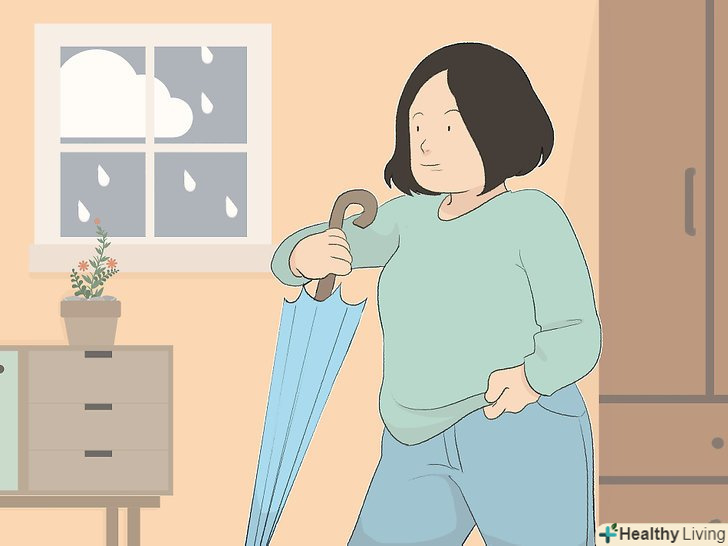 Одягніть одяг, який ви вибрали напередодні ввечері. Візьміть одяг там, де ви її поклали або повісили, і надіньте її. Покладіть всі важкі предмети гардероба, наприклад куртку, біля вхідних дверей і надіньте її разом з черевиками прямо перед тим, як вийти з дому. [9]- Вигляньте на вулицю і перевірте прогноз погоди ще раз, щоб дізнатися, чи нічого не змінилося. Додайте все необхідне до свого вбрання, наприклад парасольку або дощовик, якщо погода відрізняється від прогнозу, обіцяного напередодні ввечері.